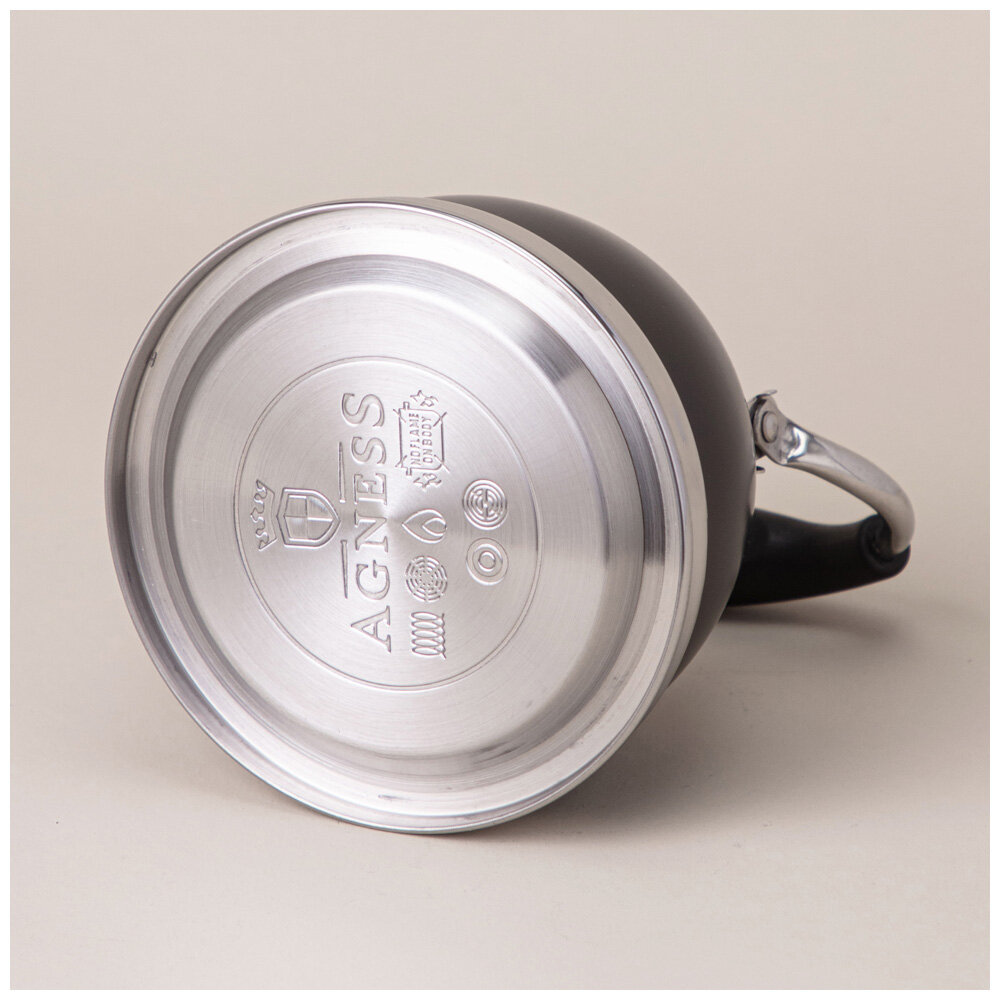 Чайник для плиты Agness со свистком 3 л, из нержавеющей стали, термоаккумулирующее дно, индукционное дно