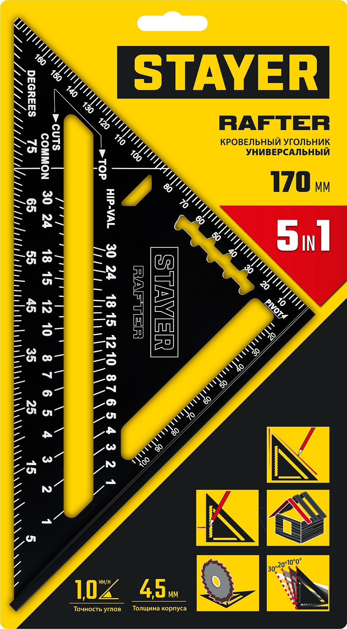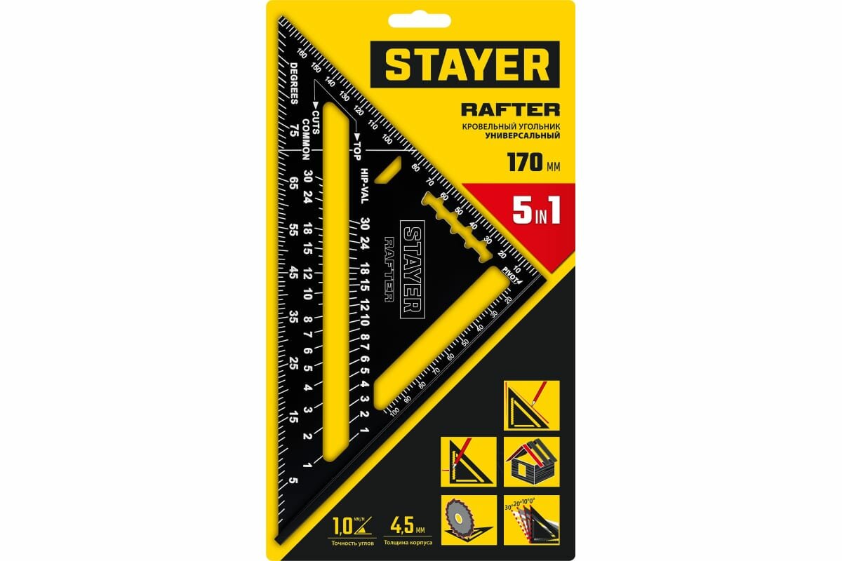 Универсальный кровельный угольник STAYER, 170 мм, 5-в-1, Rafter (34306-17)