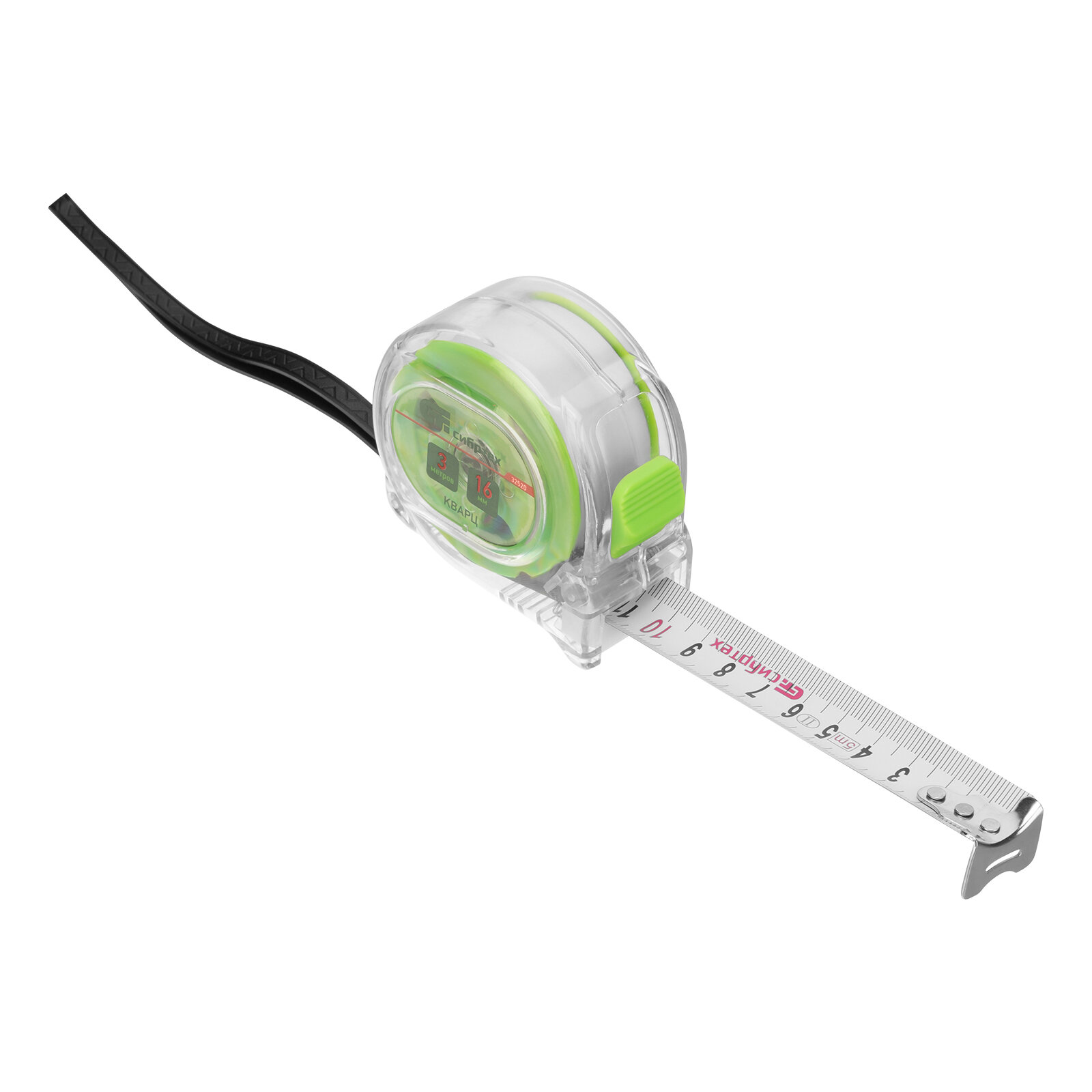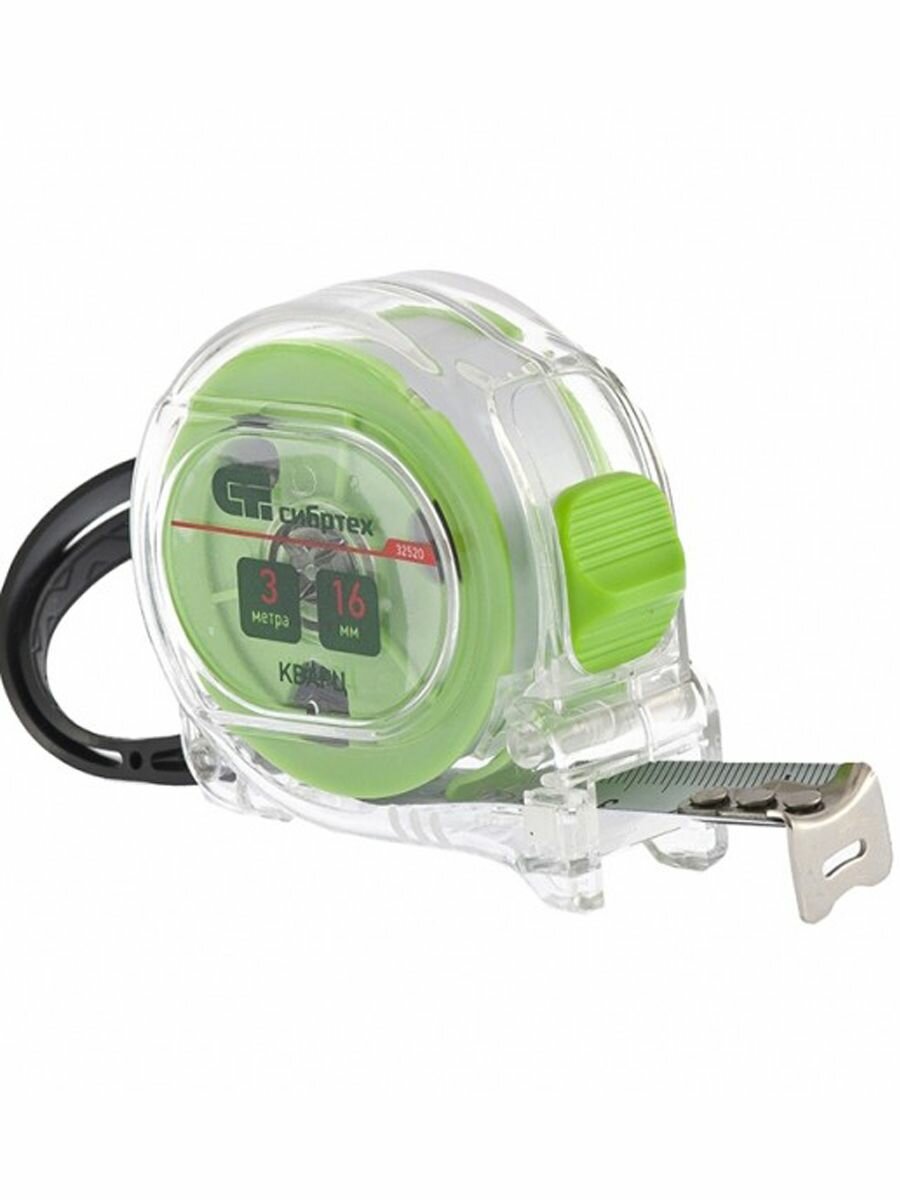 Рулетка Кварц,прозрачный корпус,амортизатор,3 м х 16 мм Сибртех интересное: