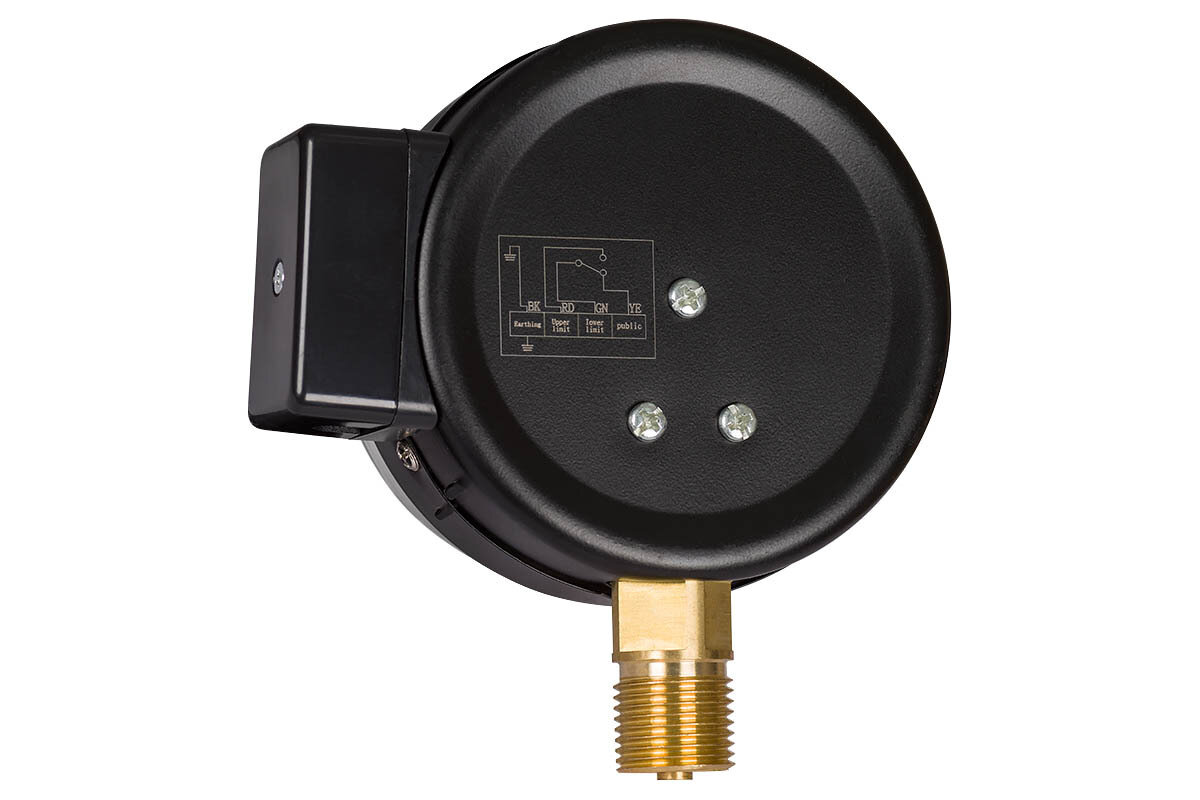 Манометр Экомера МД02(Э)-100 мм, 1 Мпа, G 1/2", с электроконтактной приставкой, радиальное подключение, корпус-сталь, черный, Эко-М МД02Э-100-G-1МПа