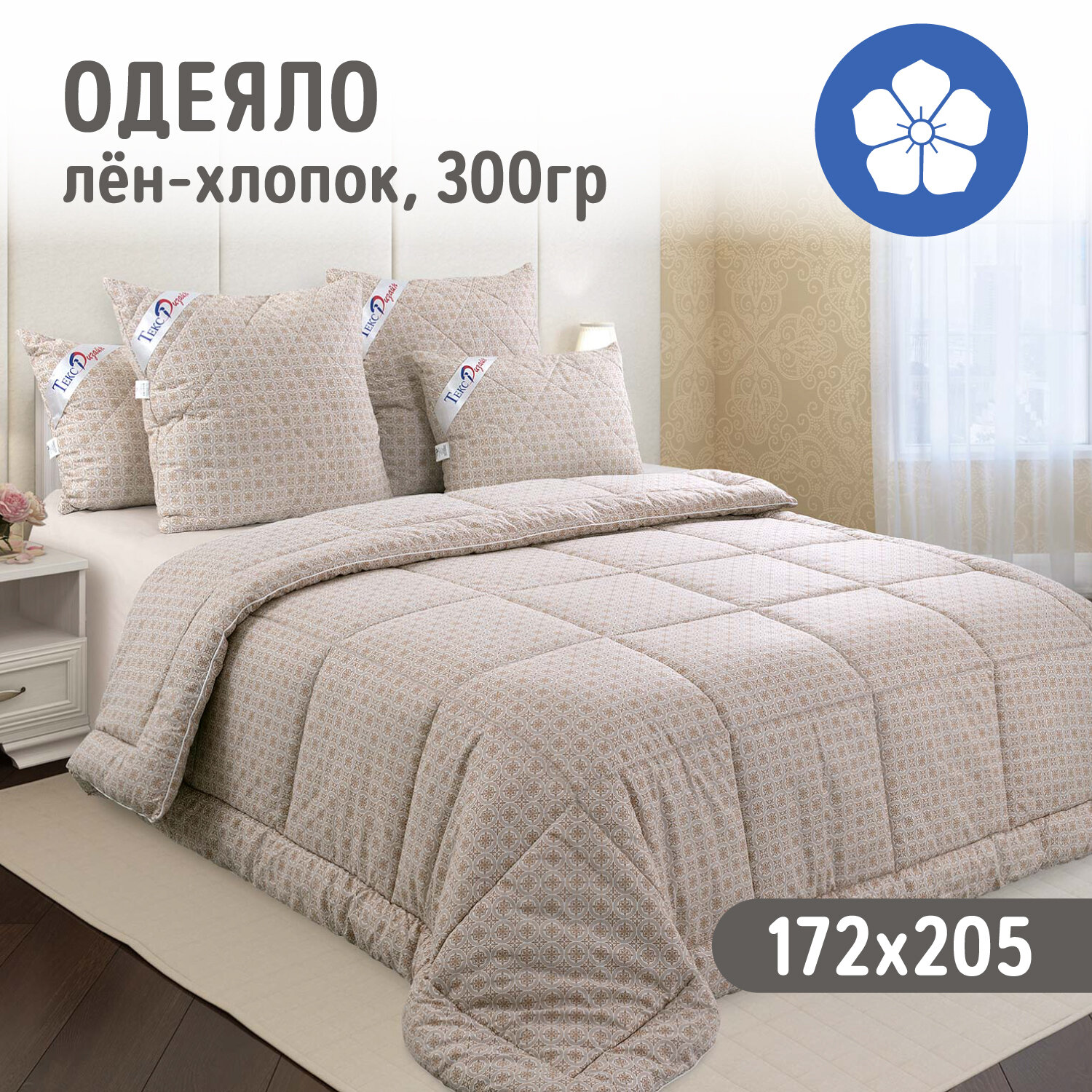 Одеяло 2-спальное 172x205, Лен-Хлопок, Всесезонное 300 г, перкаль интересное: