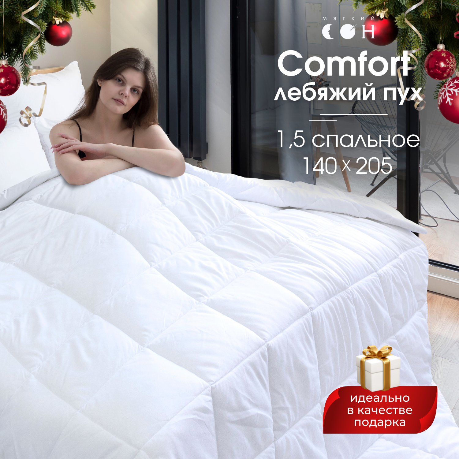 Одеяло 15 спальное лебяжий пух Мягкий сон 140x205 см белое гипоаллергенное всесезонноедля сна, для дома , в подарок / для дачи / для взрослых / для детей / для беременных