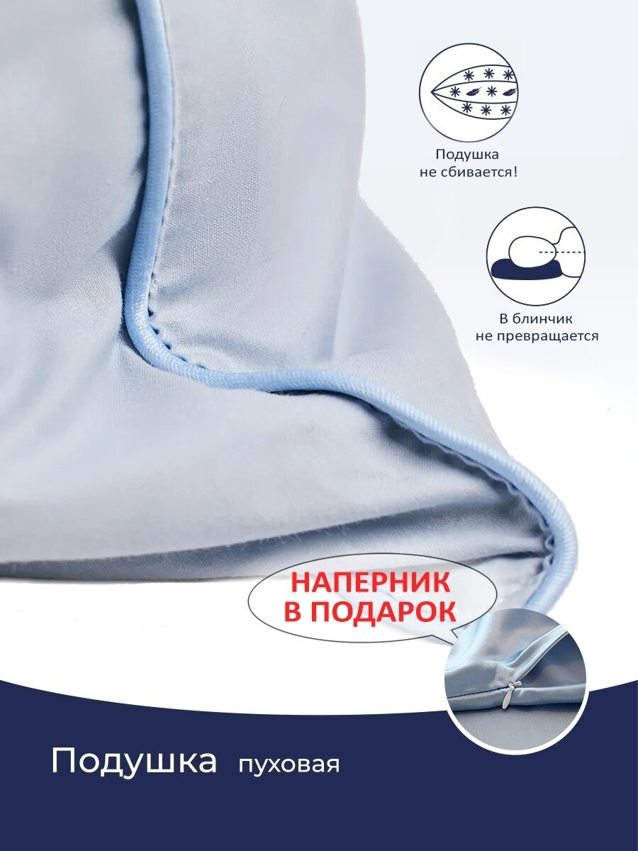 Подушка пуховая, 70x70 см, 100% натуральный гусиный пух