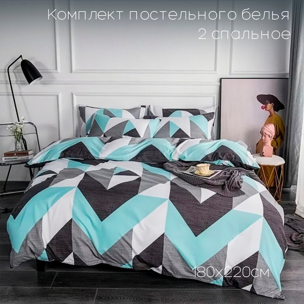 Постельное белье Сатин 2 спальный с простыней на резинках по углам Наволочки 70x70 Хлопок Aimee SAYA HOME Зигзаг