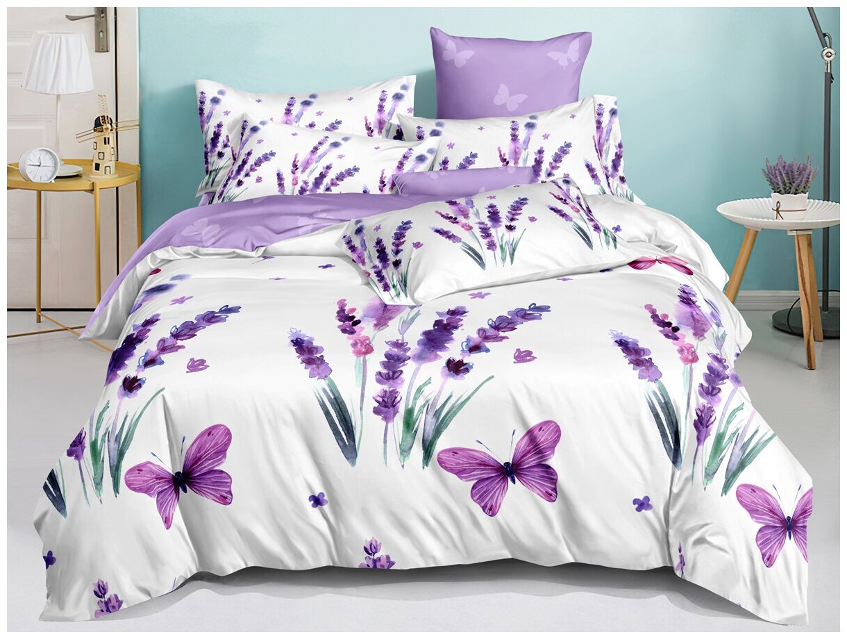 Постельное белье из поплина 198-PC Cleo (кремовый-сиреневый), 2,0 спальный (наволочки 70x70)