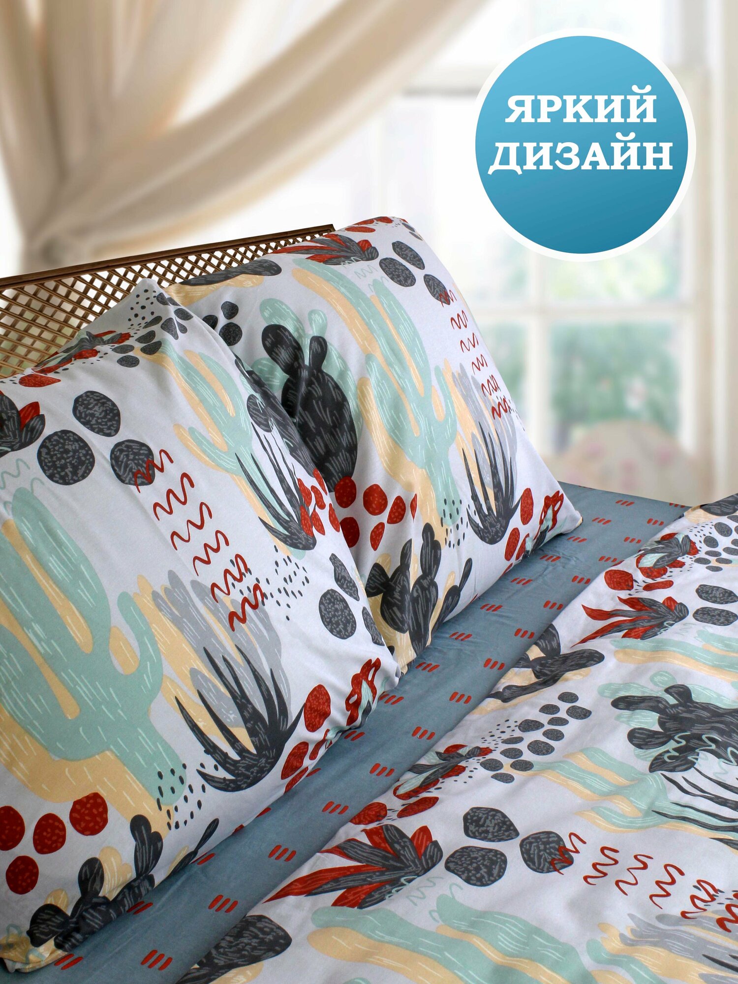 Постельное белье 2 спальное с кактусами Cleo Pure cotton комплект хлопок поплин наволочки 70х70