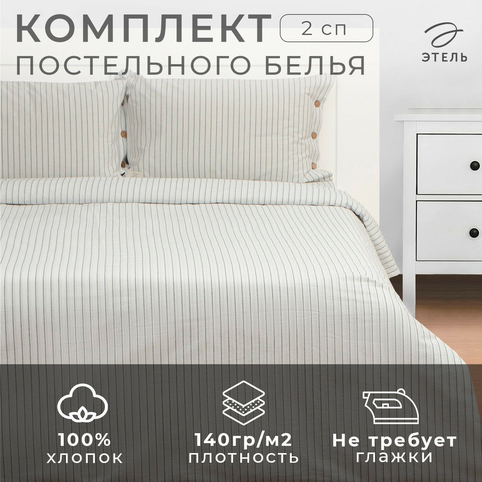 Купить Постельное бельё Этель 2 сп White stripes 180х210 см,220х240 см,50х70-2шт, 100% жатый хлопок, 140 гр/м2