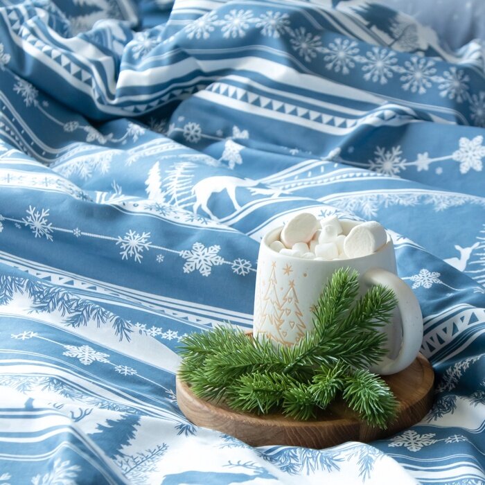 Постельное белье Евро Новогодний лес 200*217 см, 240*220 см, 70*70 см - 2 штуки