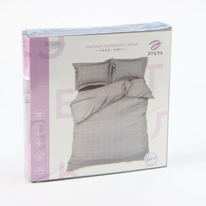 Постельное белье Этель 2-спальное Cage: grey, 175х215 см, 200х215 см, 50х70+3 см 2 шт, мако-сатин, 114 г/м2 (9910055/9910061)