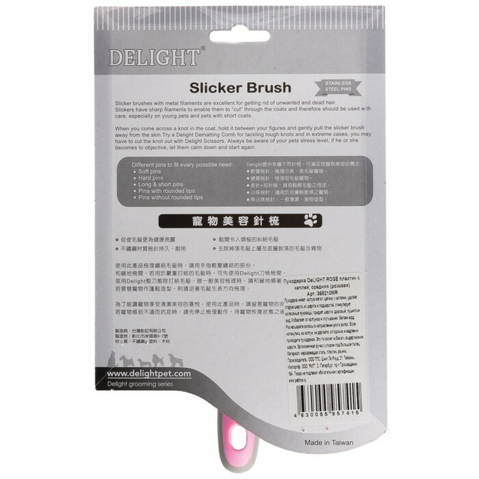 Купить Пуходерка щетка для кошек и собак DeLIGHT ROSE пластиковая, с мягким кордом, средняя, 368210MR