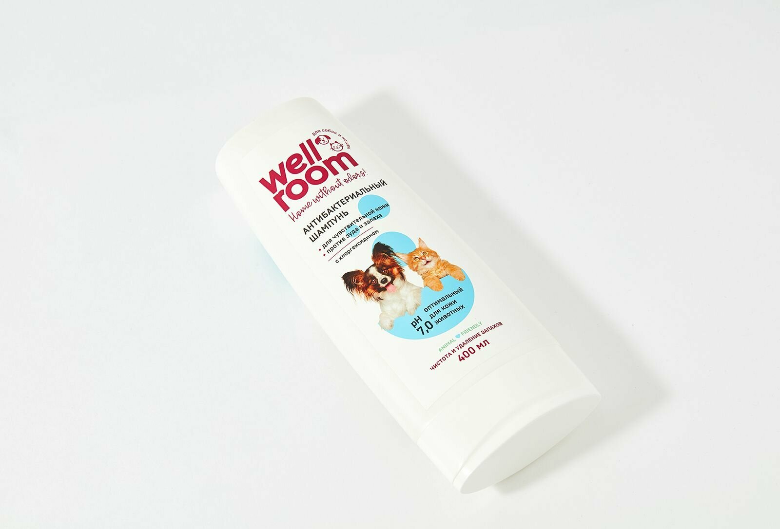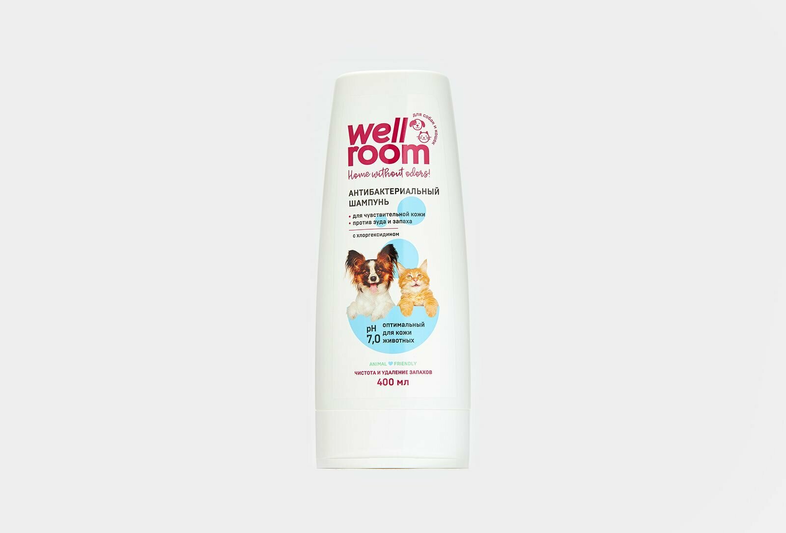 Универсальный антибактериальный шампунь для кошек и собак с хлоргексидином Wellroom 1 литр