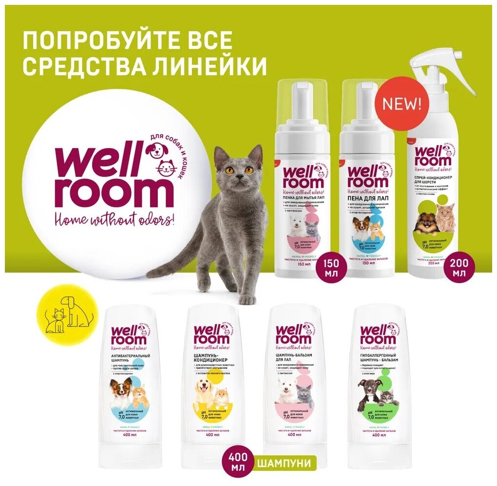 Пенка для мытья лап - шампунь для кошек и собак с хлоргексидином Wellroom