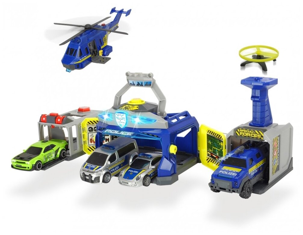 Полицейский набор с вертолетом и машинами интересное: