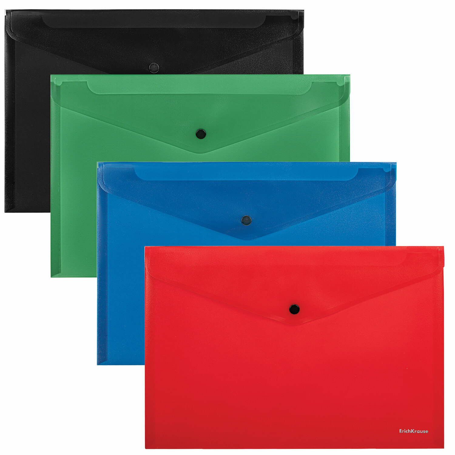 Купить ErichKrause Папка-конверт на кнопке пластиковая Fizzy Classic, A4, непрозрачный, 12 шт