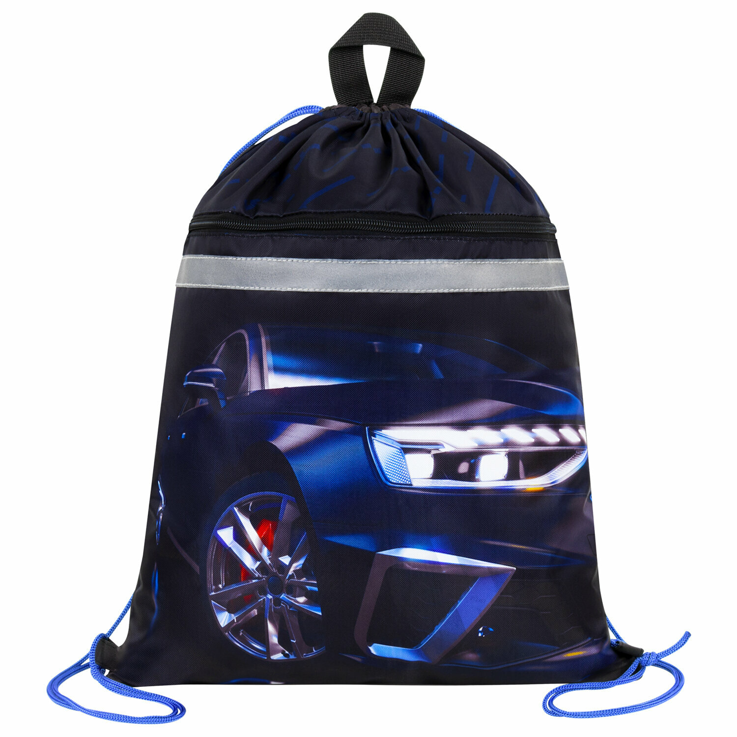 Купить Мешок для обуви BRAUBERG, с петлей, светоотр.полоса, 2 отделения, 46х36 см, Super car, 272397