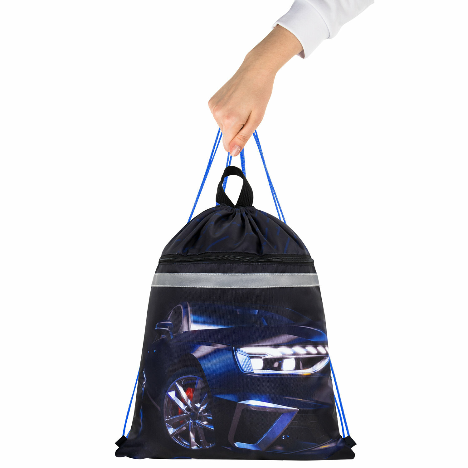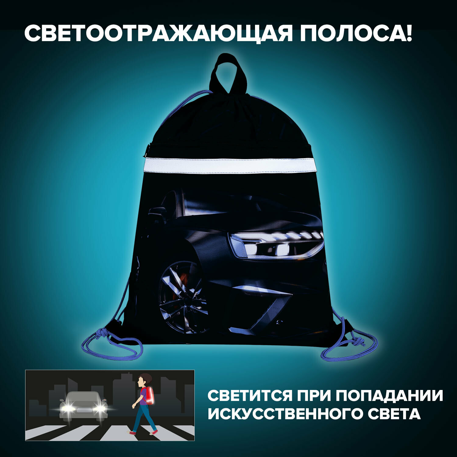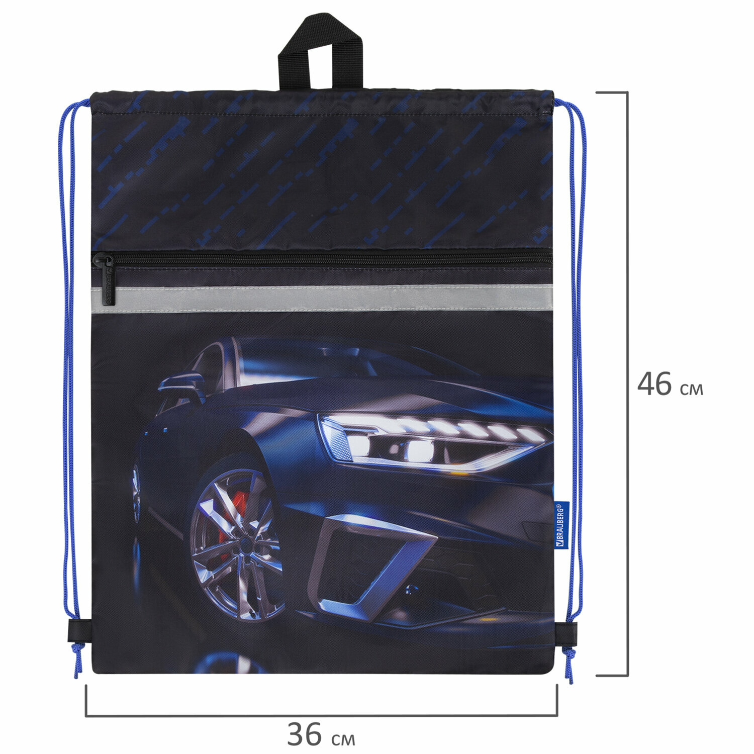 СохранитьМешок для обуви BRAUBERG, с петлей, светоотр.полоса, 2 отделения, 46х36 см, Super car, 272397 интересное: