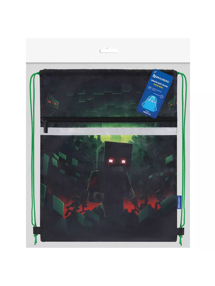 Мешок для обуви BRAUBERG, с петлей, светоотражающая полоса, 2 отделения, 46х36 см, Night warrior, 272396, в комплекте 1шт