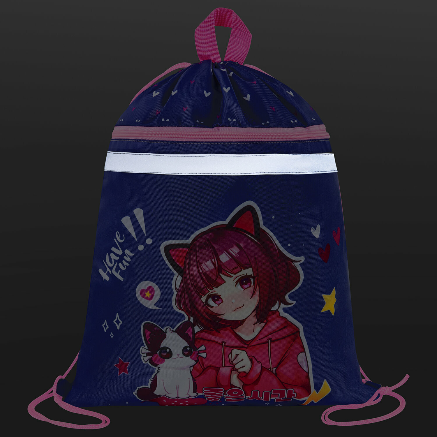 Мешок для обуви BRAUBERG, с петлей, светоотр.полоса, 2 отделения, 46х36 см, Anime friends, 272398