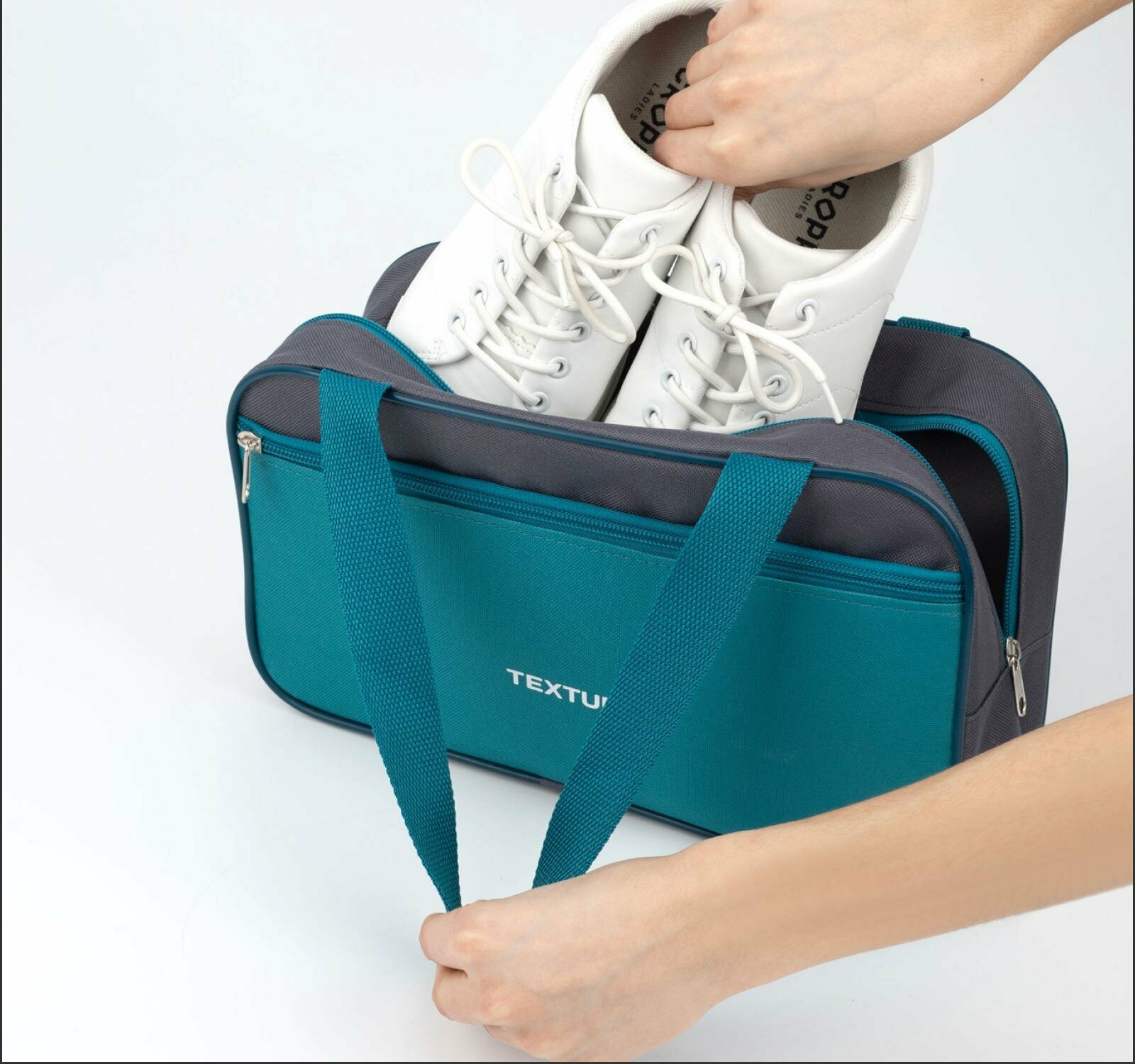 Купить Сумка для обуви на молнии, наружный карман, TEXTURA, цвет серый/бирюзовый/Сумка для обуви на молнии, наружный карман, TEXTURA, цвет серый/бирюзовый