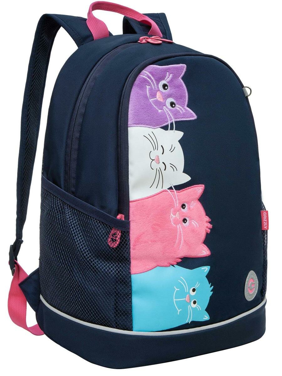 Рюкзак GRIZZLY школьный, анатомическая спинка, 2 отделения, для девочек, FRIENDS CATS, 38х28х18 см, RG-463-6/2