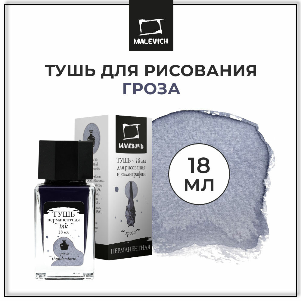 Тушь для рисования и каллиграфии Малевичъ, цветная перманентная, гроза, 18 мл