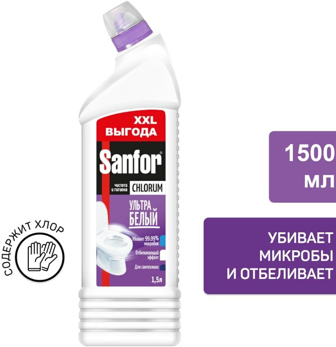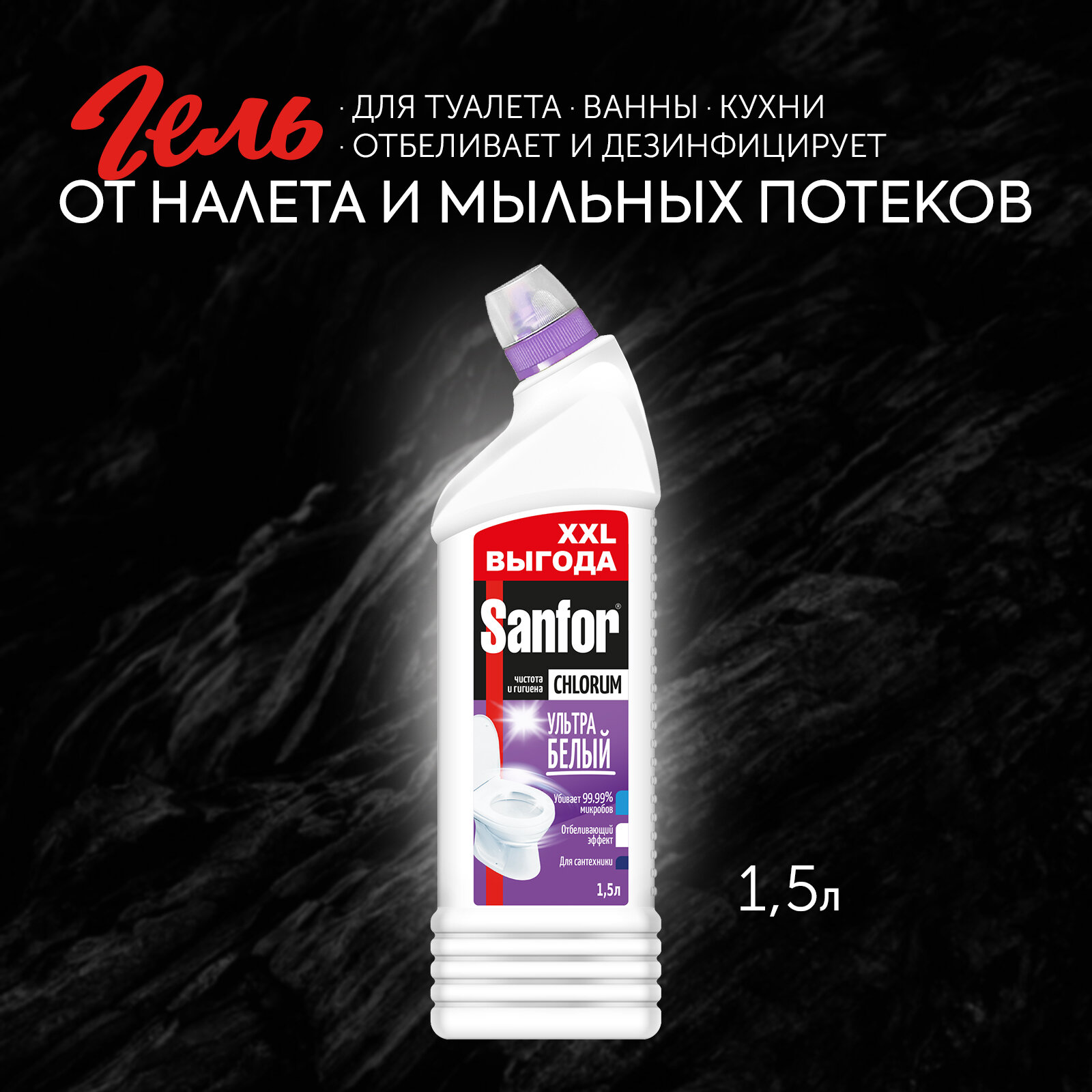 Чистящий гель Sanfor "Chlorum", Ультра белый, для сантехники, 1500 мл интересное: