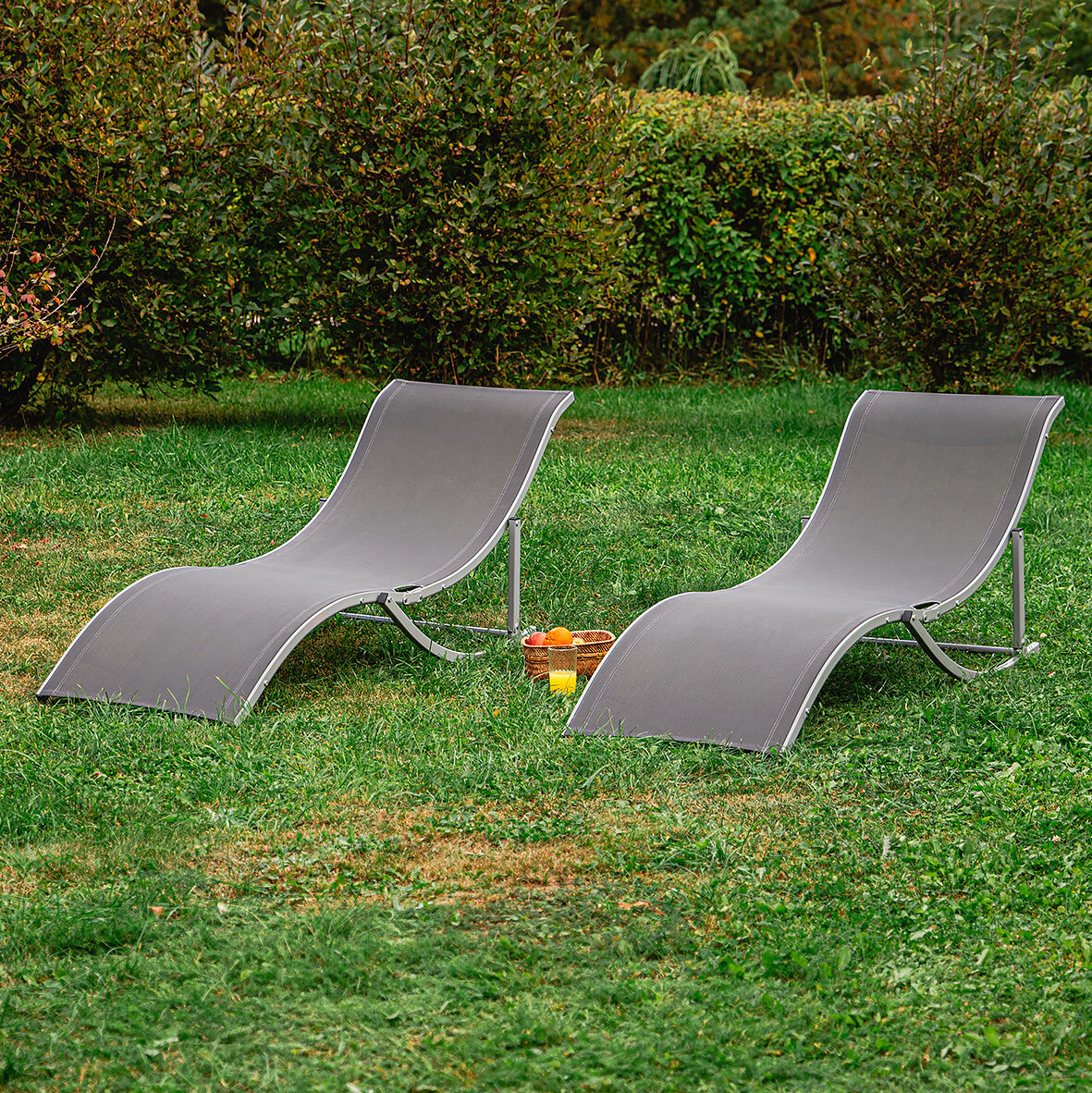 Комплект кресел-шезлонгов складных из алюминия Фолд для дачи, серый
