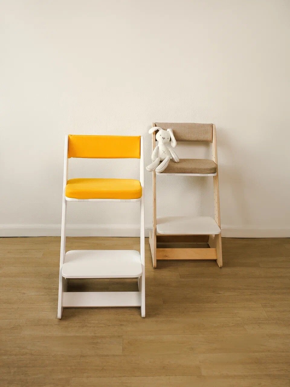 Растущий стул Панда белый с подушками жёлтыми интересное: