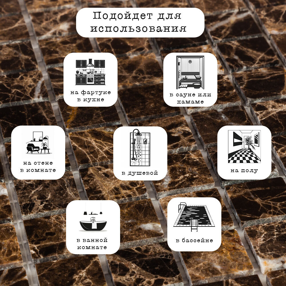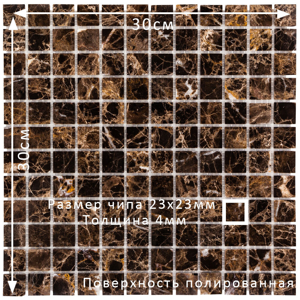 Мозаика из мрамора Dark Emperador DAO-602-23-4. 3 листа. Площадь 0.27 м² интересное: