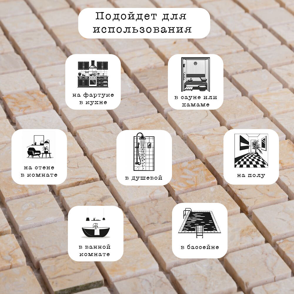Мозаика из натурального мрамора Sahara Gold DAO-639-15-4. 3 листа. Площадь 0.27 м² интересное: