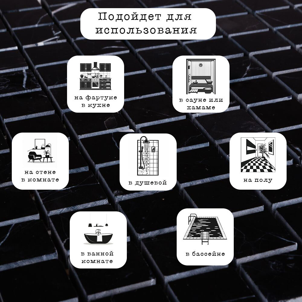 Мозаика из мрамора Nero Marquina DAO-605-23-8. 3 листа. Площадь 0.27 м² интересное: