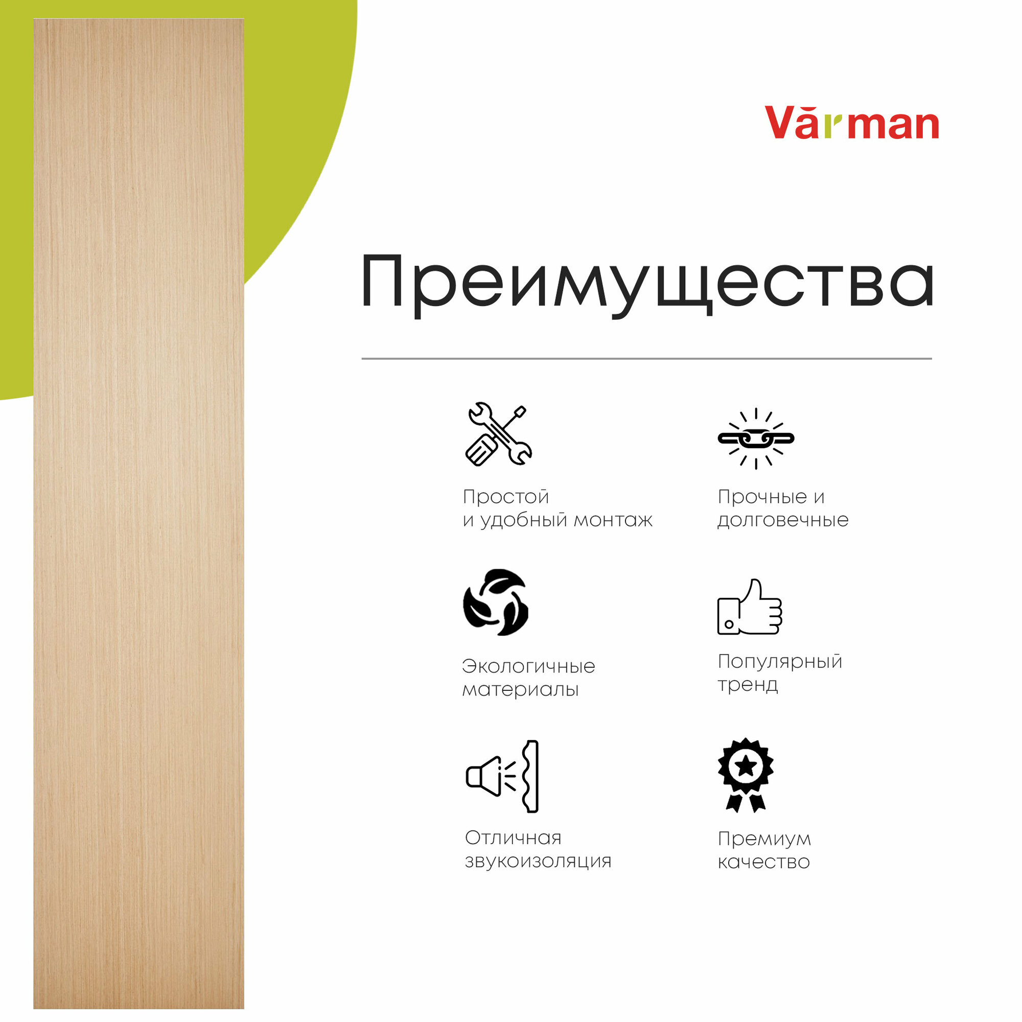 Панель стеновая, шпон Дуб Ligth 15S, 280х60 см, МДФ 10 мм, серия ONE, Varman.pro