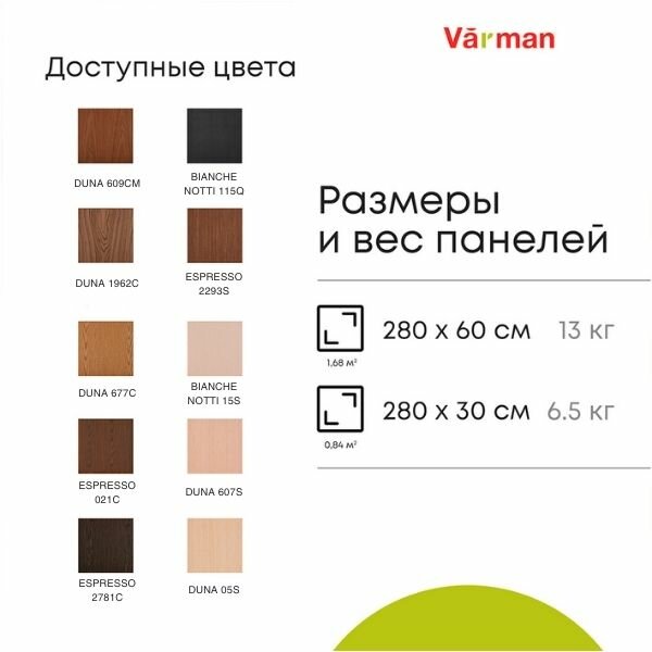 Панель стеновая, шпон DUNA 677С, 60х280 см, МДФ 10 мм, серия ONE, Varman.pro