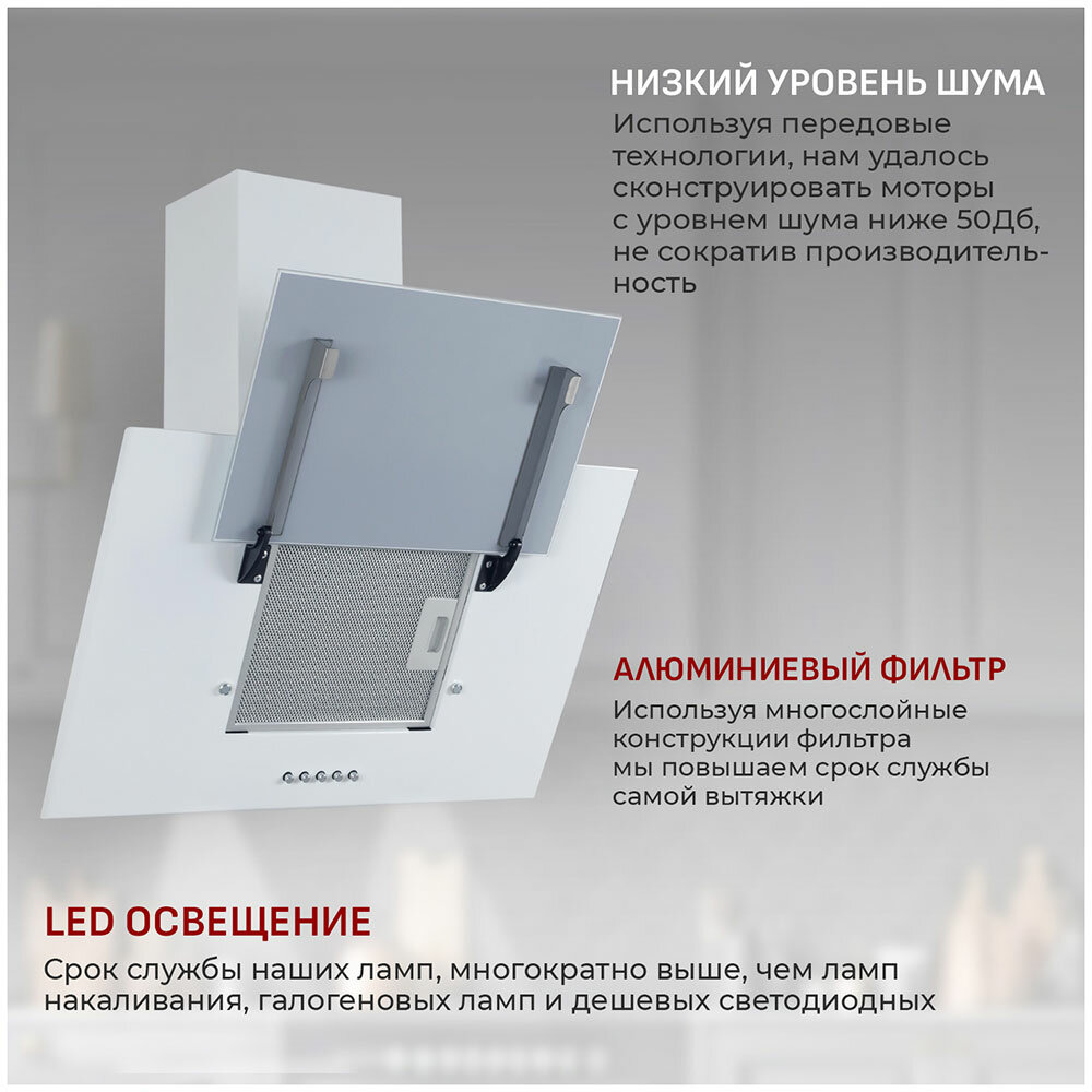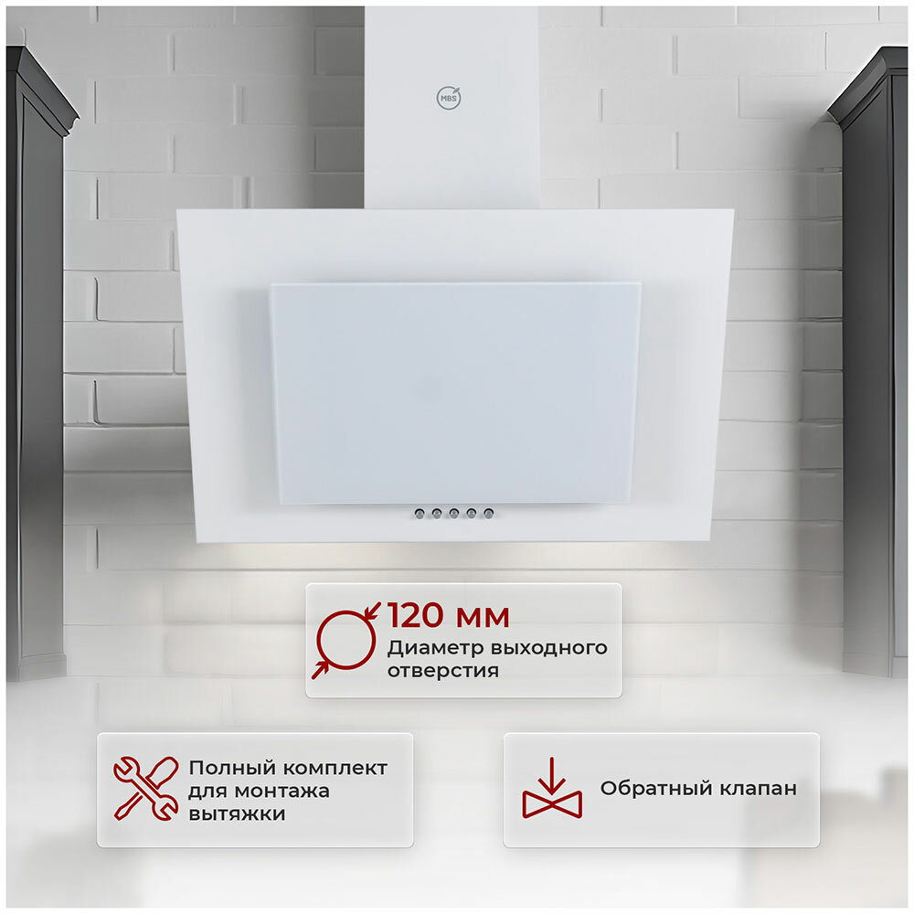 Наклонная вытяжка MBS GALTONIA 150, цвет корпуса glass white, цвет окантовки/панели белый