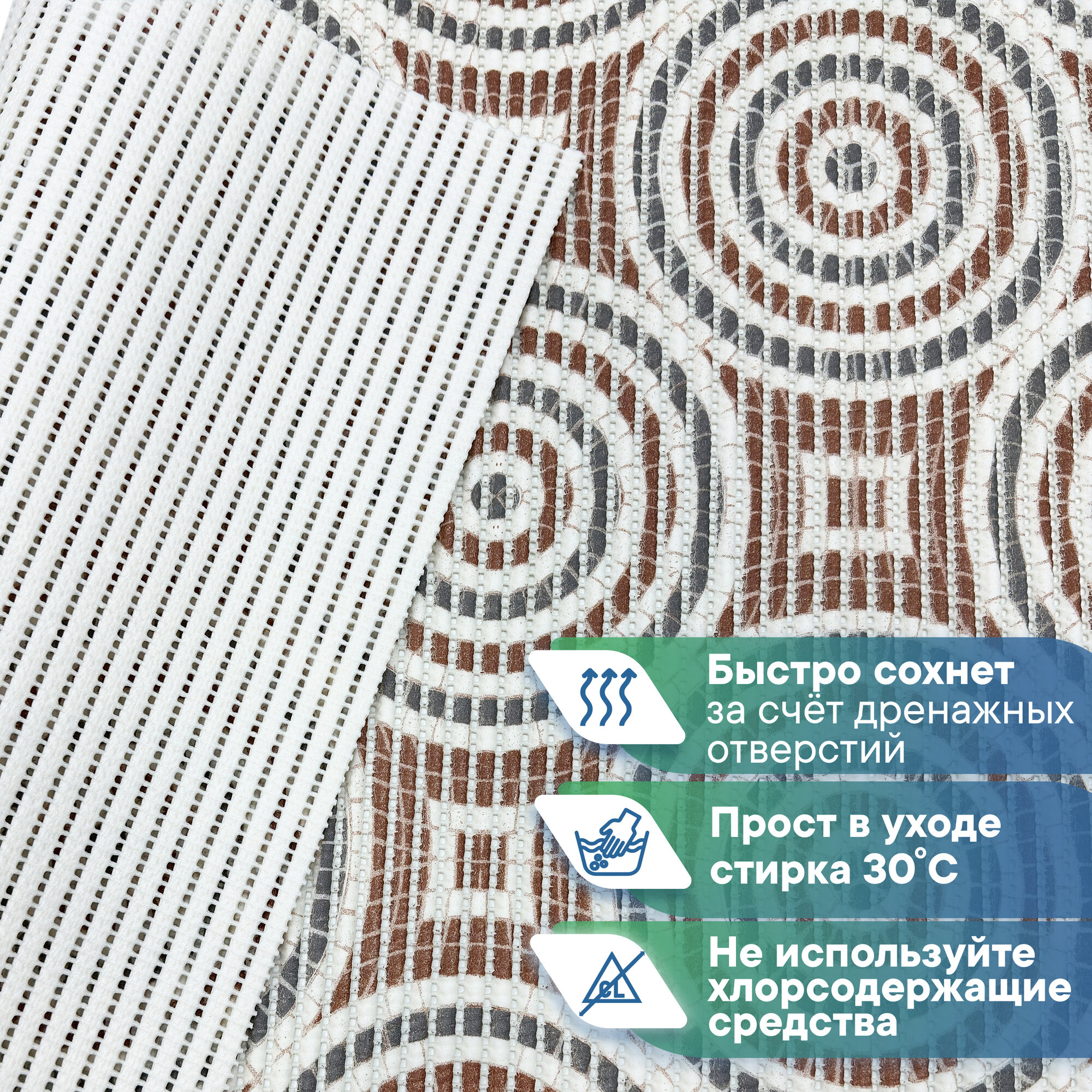 Коврик для ванны душа и туалета VILINA из вспененного ПВХ противоскользящий мягкий безворсовый 50х80см рисунком 112C