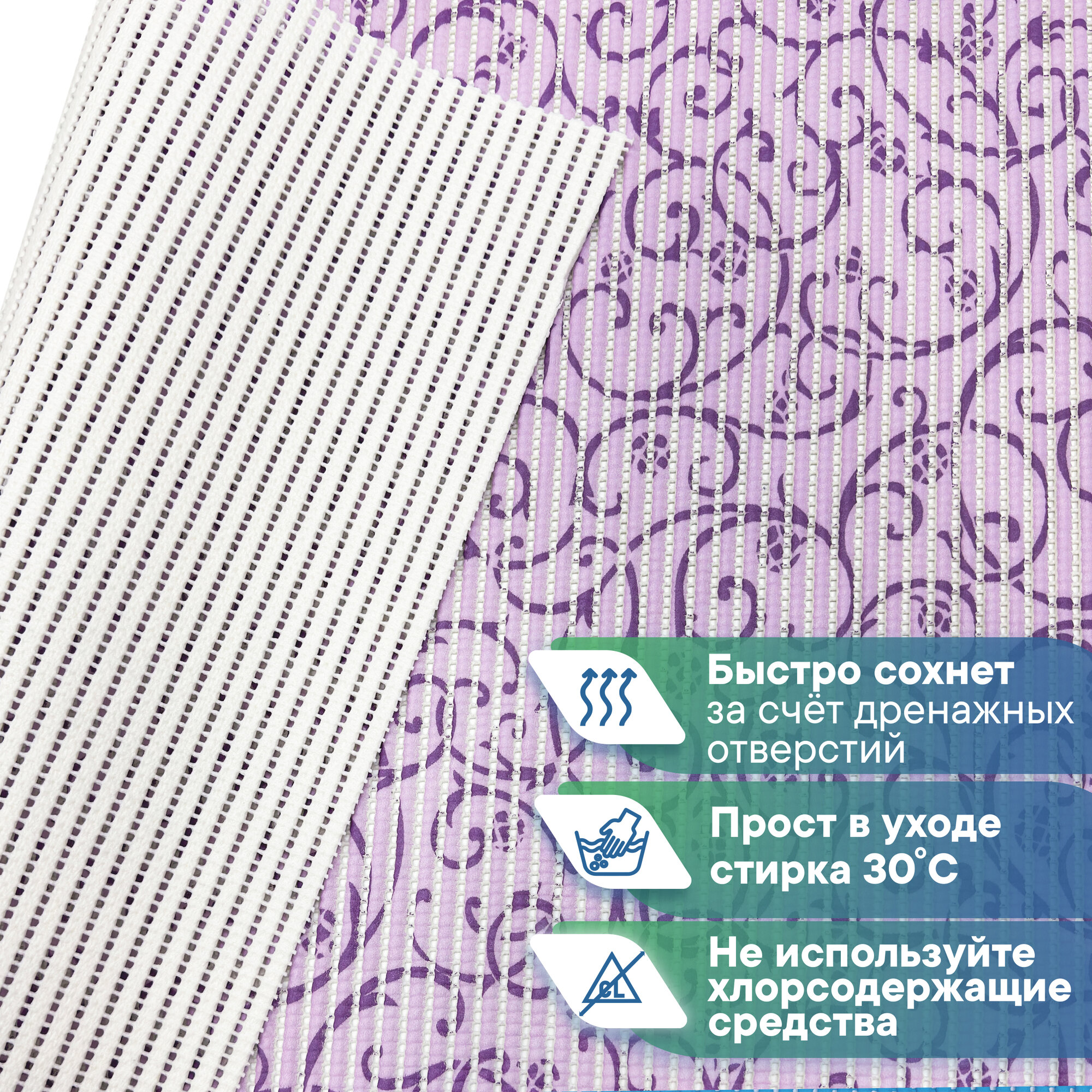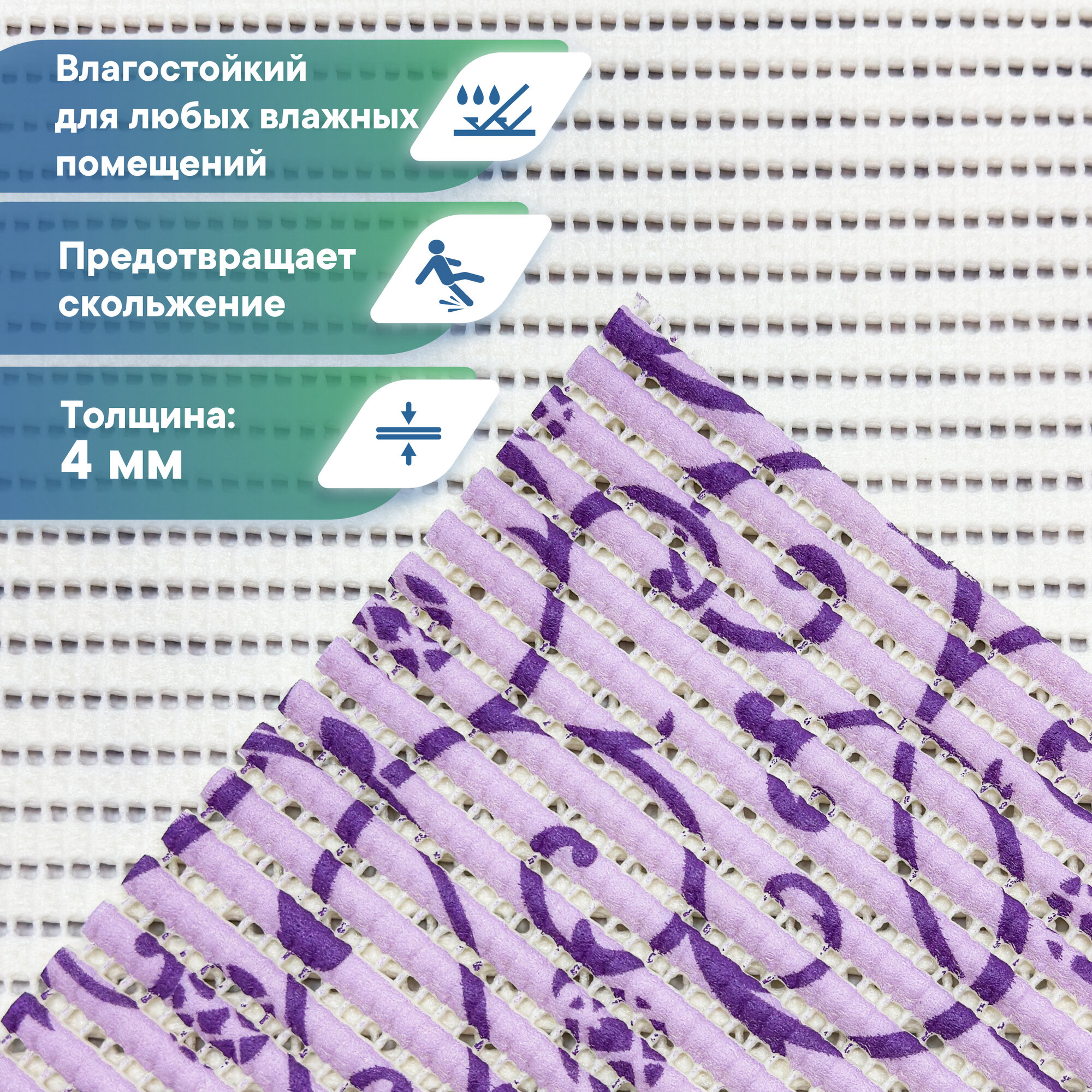 Коврик-дорожка для ванной из вспененного ПВХ 0,65 х 15 м / вилина Напольное покрытие в рулоне лаванда
