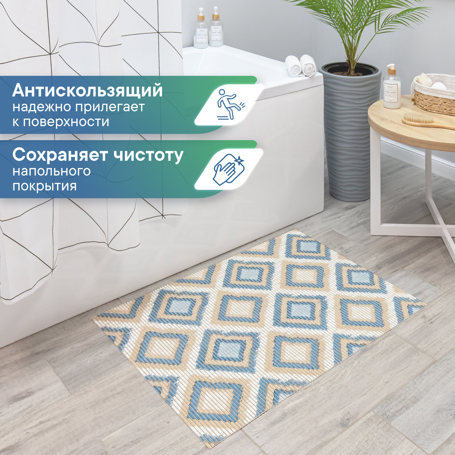 Коврик для ванны душа и туалета VILINA из вспененного ПВХ противоскользящий мягкий безворсовый 50х80см рисунком 100С