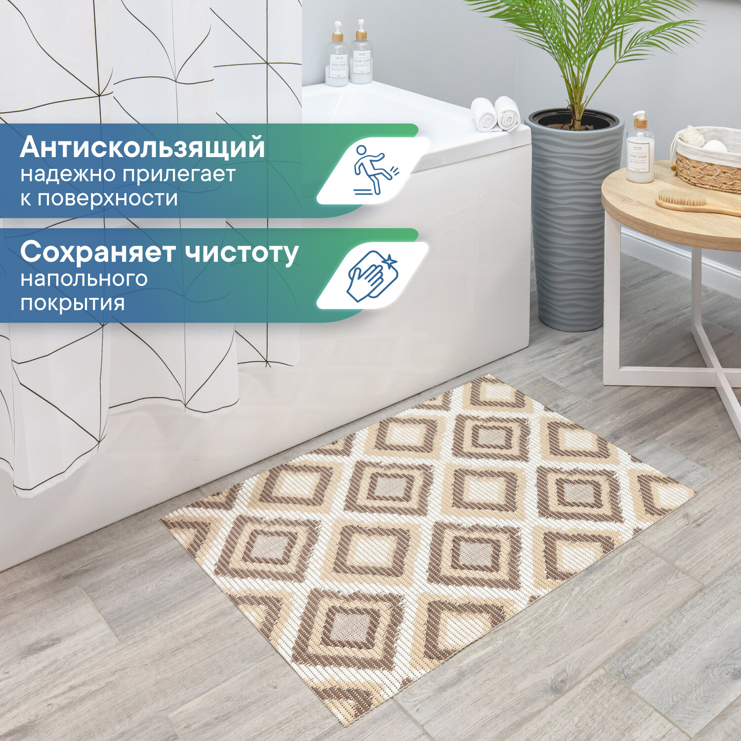 Коврик для ванны душа и туалета VILINA из вспененного ПВХ противоскользящий мягкий безворсовый 50х80 с рисунком V13 бежевый