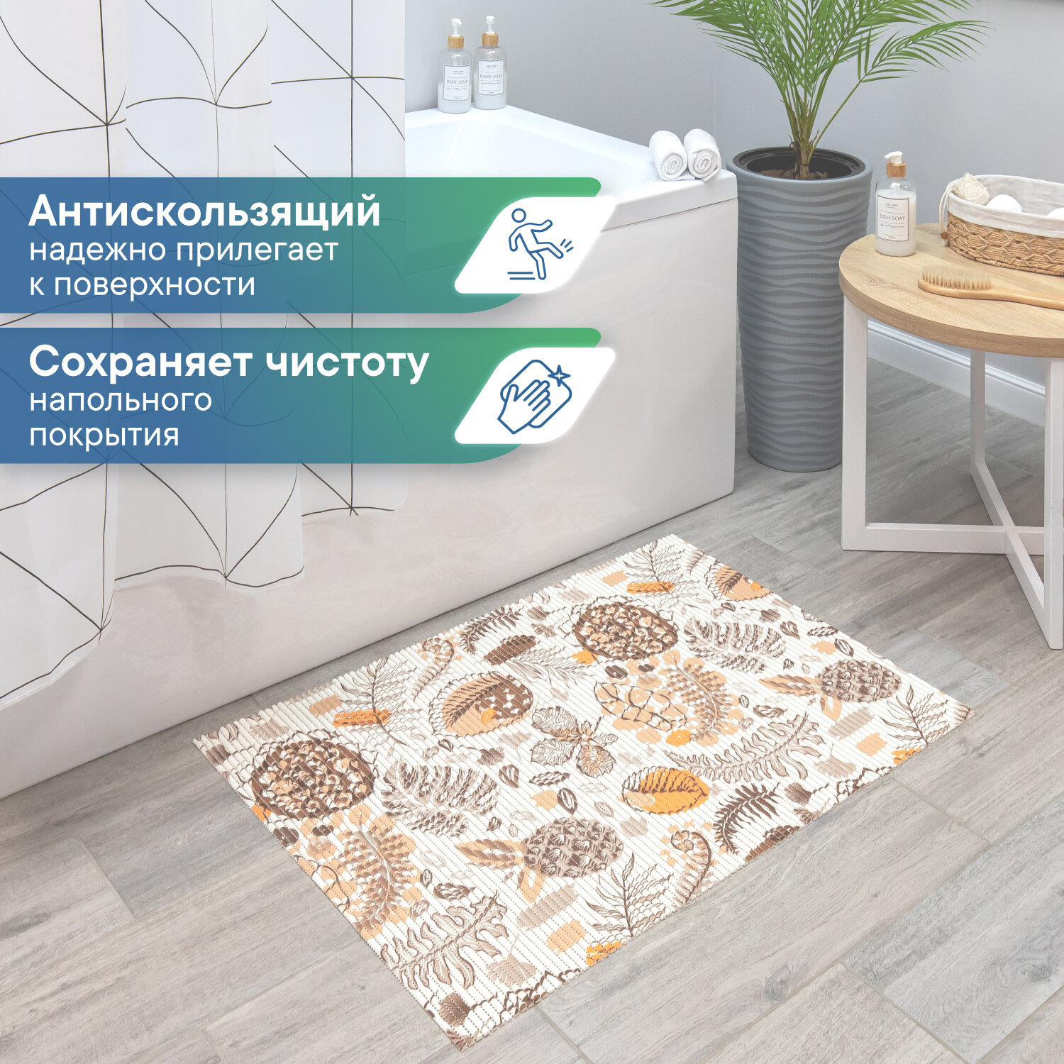 Коврик для ванны душа и туалета VILINA из вспененного ПВХ противоскользящий мягкий безворсовый 50х80 с рисунком V13 бежевый
