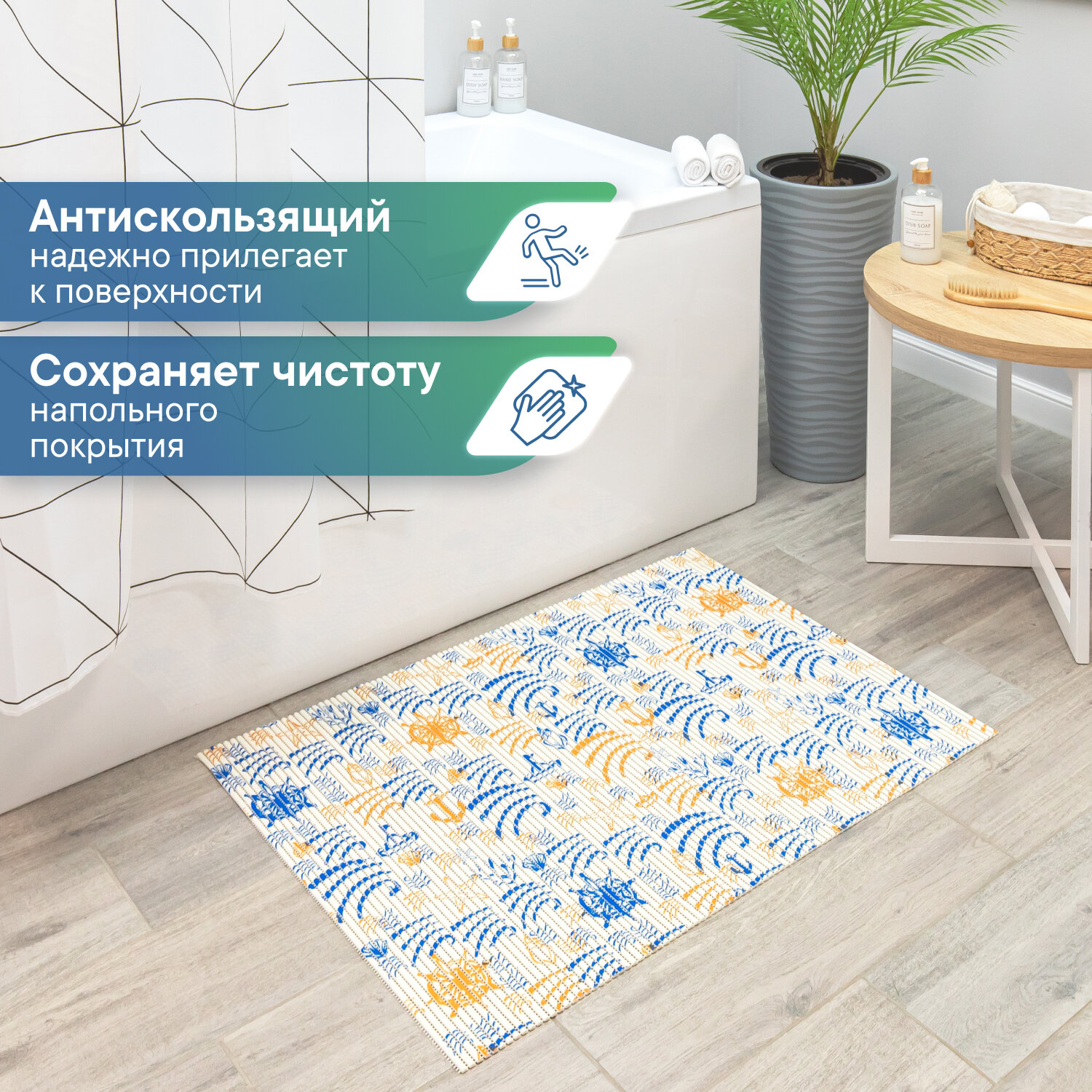 Купить Коврик для ванны душа и туалета VILINA из вспененного ПВХ противоскользящий мягкий безворсовый 50х80см рисунком 109C