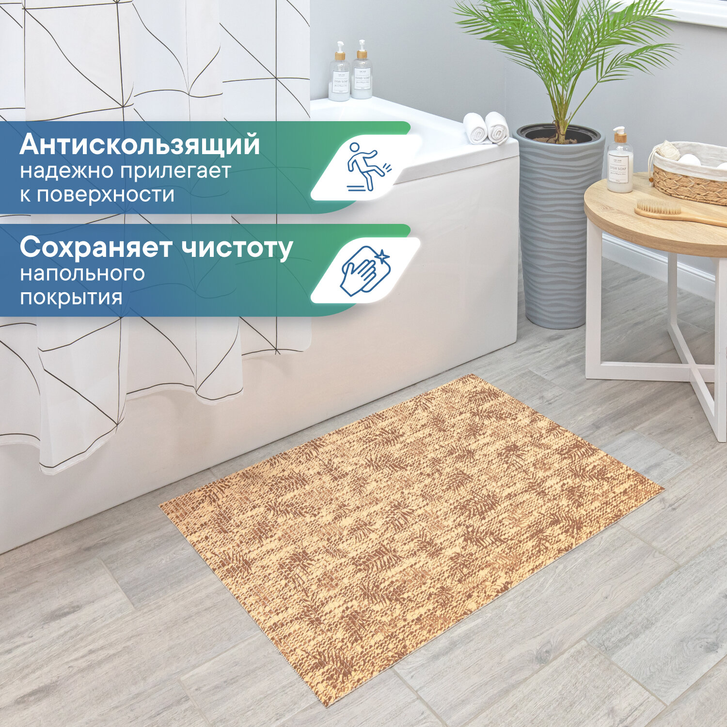 Коврик для ванны душа и туалета VILINA из вспененного ПВХ противоскользящий мягкий безворсовый 50х80 с рисунком V13 бежевый