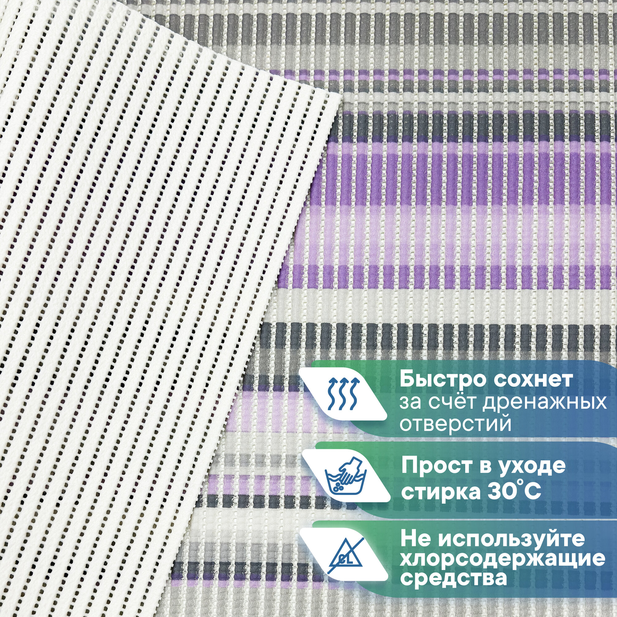 Коврик для ванны душа и туалета VILINA из вспененного ПВХ противоскользящий мягкий безворсовый 50х80 с рисунком OV10 лавандовый/фиолетовый