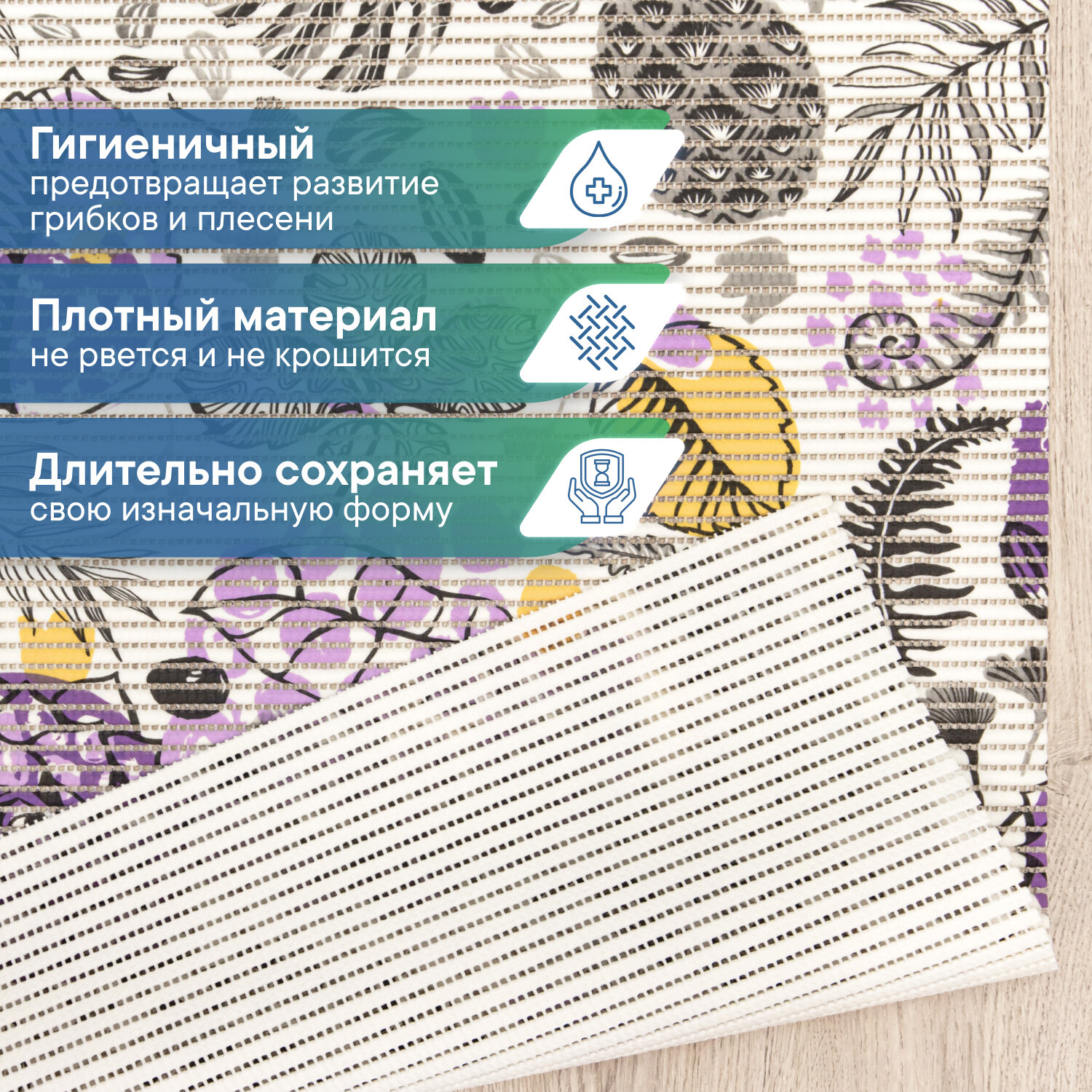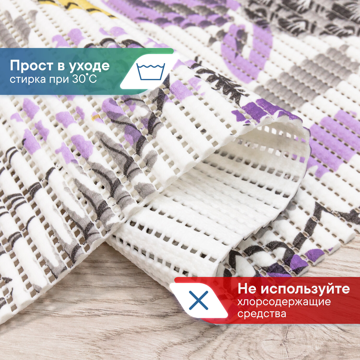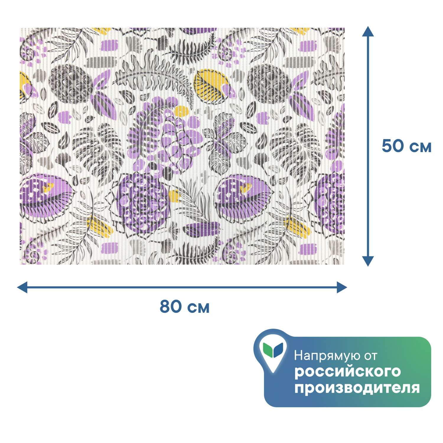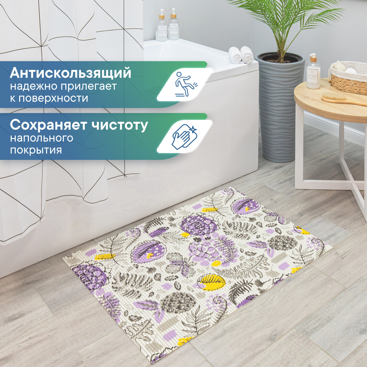 Коврик для ванны душа и туалета VILINA из вспененного ПВХ противоскользящий мягкий безворсовый 50х80 с рисунком OV10 лавандовый/фиолетовый