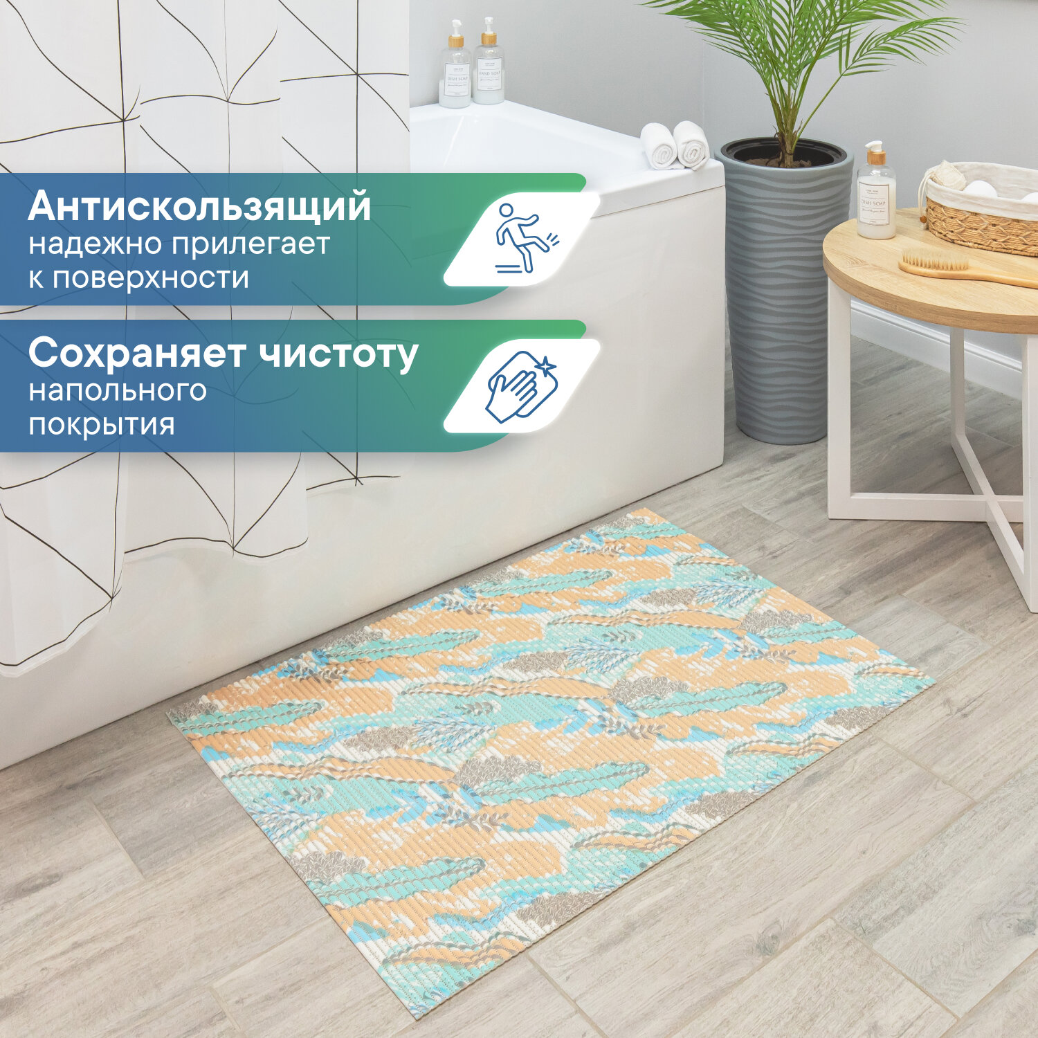 Коврик для ванны душа и туалета VILINA из вспененного ПВХ противоскользящий мягкий безворсовый 50х80см рисунком 100С