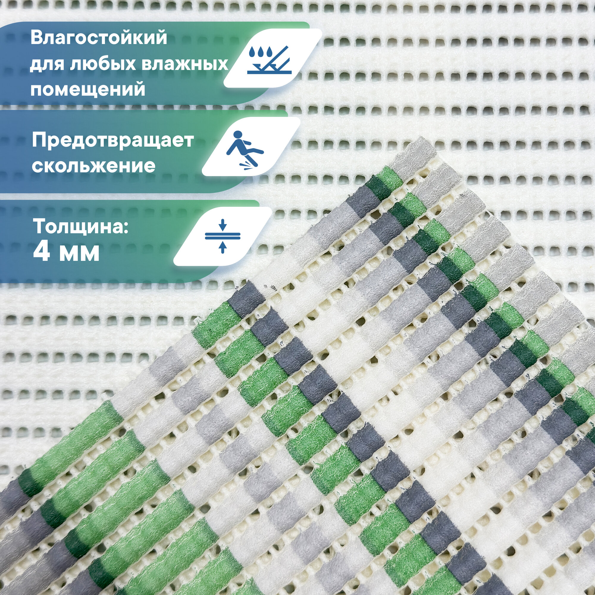 Коврик для ванны душа и туалета VILINA из вспененного ПВХ противоскользящий мягкий безворсовый 50х80 с рисунком OV12 фисташковый/зеленый