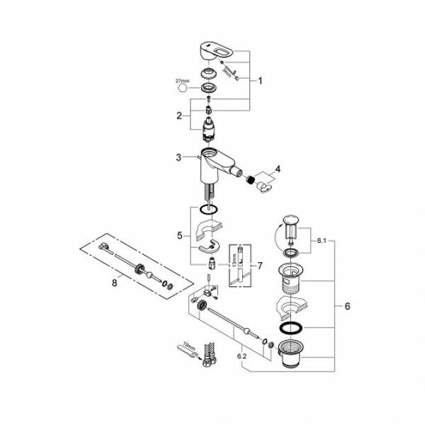 Смеситель для биде Grohe BauLoop с донным клапаном (23338000)