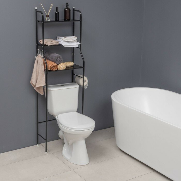 Купить Доляна Стеллаж над унитазом, 47×25×152 см, цвет чёрный