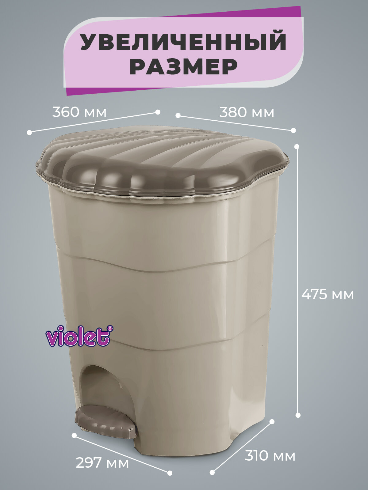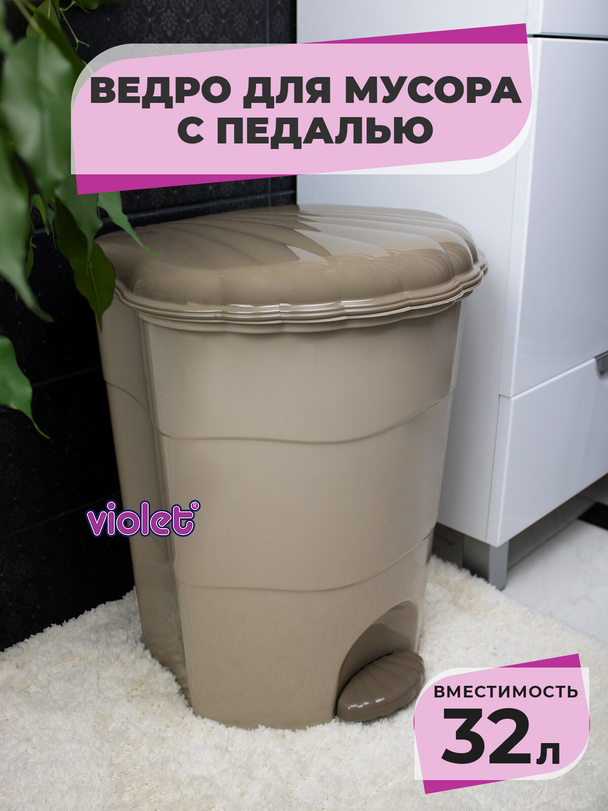 Ведро для мусора Violet, 32 л, с педалью, латте-капучино