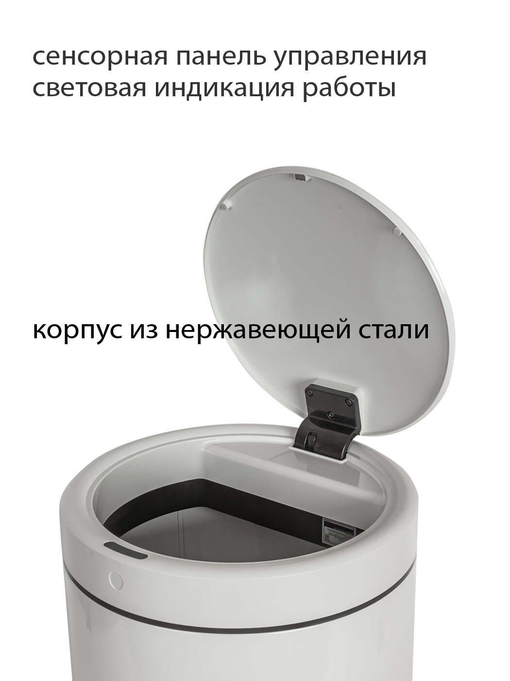 Сенсорное ведро металлическое Pioneer WB304W 30 литров / Мусорное ведро с сенсорной крышкой / Умное ведро для мусора / 3 режима открывания /