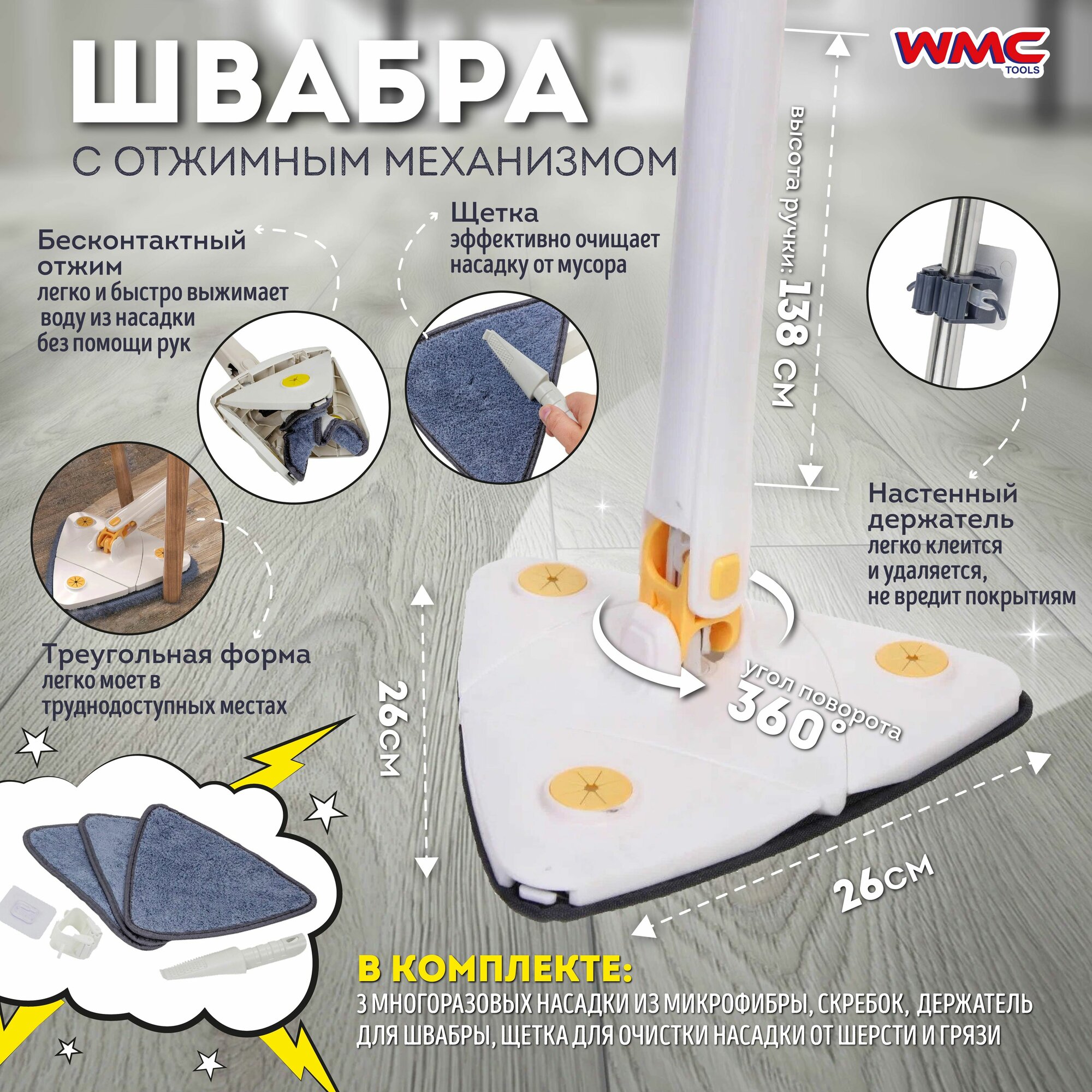 Швабра с отжимом WMC для влажной и сухой уборки
